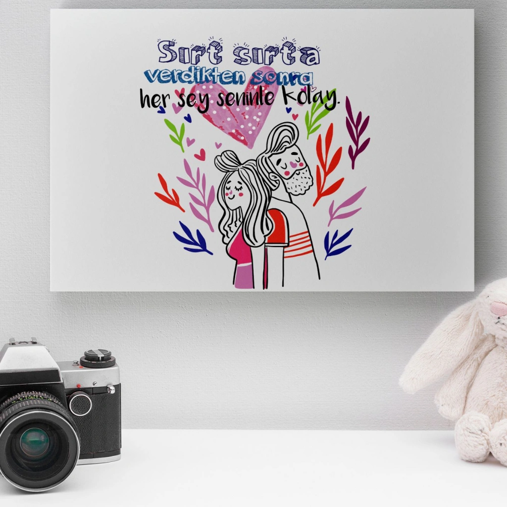 Hediyelik Özel Tasarımlı Mini Kanvas  Tablo- Ürün; 1. Sınıf özel beyaz kanvas kumaş ve yüksek çözünürlüğe sahip tasarımın süblimasyon baskı tekniği uygulanarak imal edilmektedir.- Görsel tabloya ortalanıp baskı yapılmaktadır.- Dekoratif özellikteki Canvas Tablo dıştan dışa 19 cm x 27,5 cm. (A4 kağıt ölçüsü) ölçülerine sahiptir.- Kanvas Tablonun iç yüzeyinde ahşap çerçevesi bulunmaktadır.